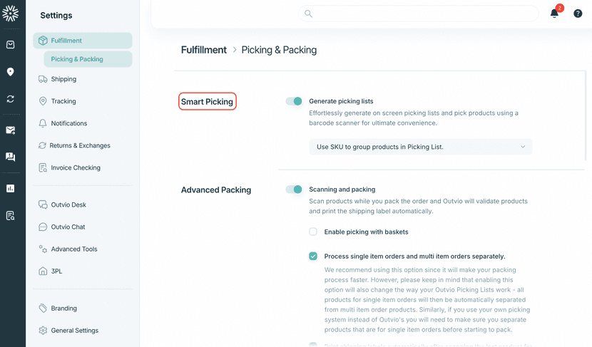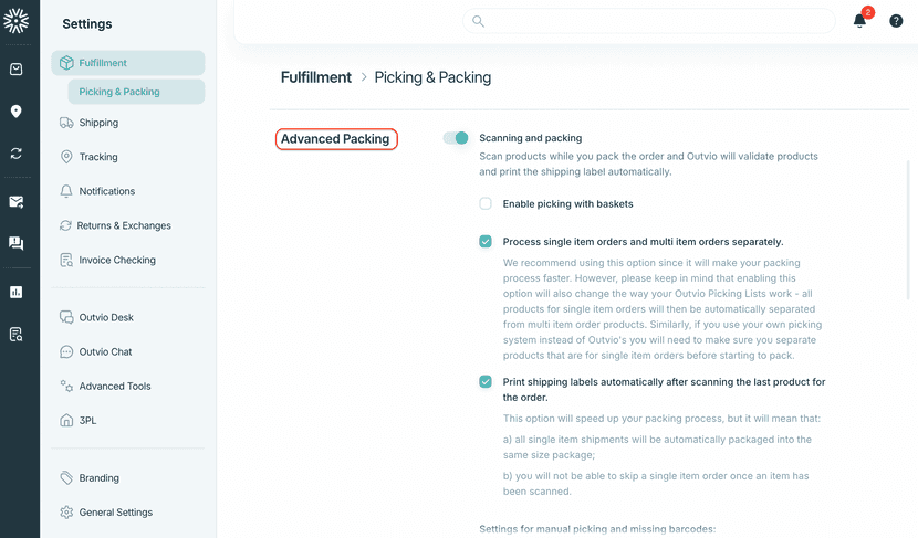 Activate this option to define how many baskets and products per basket you use. Outvio will assign items accordingly and tell you which basket to scan from.