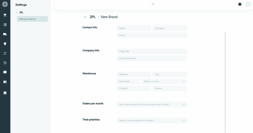 Click on Add Brand from the left-hand menu. A new page opens prompting you to enter your client’s data.