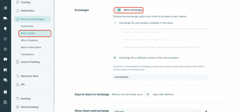 You can decide when Outvio creates the exchange order: immediately, after courier pickup, or after receiving the return.