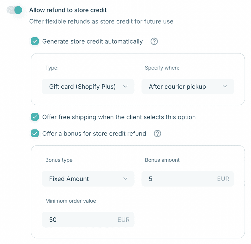 π€© Additional bonus β add fixed or % bonus on store credit.