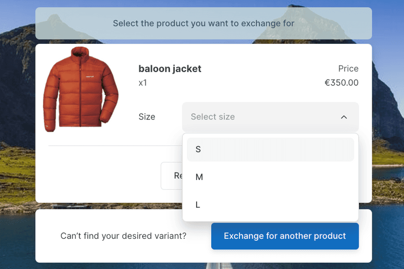 - Exchange for a different variant of the same product