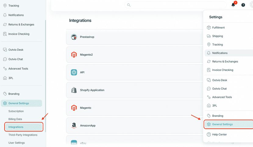 1. Go to Settings → Integrations → Shopify App