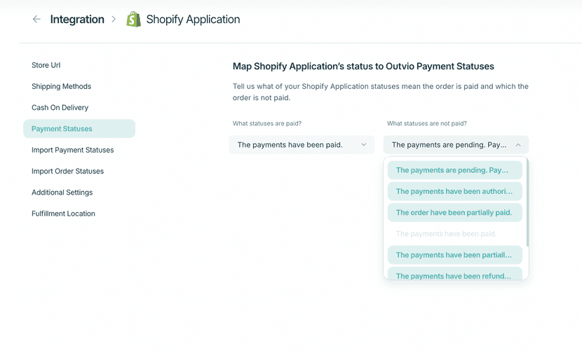 Step 4: Map Shopify Payment Status to Outvio