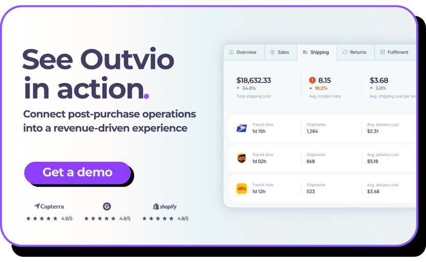 - Outvio manages the full logistics flow in eCommerce. It’s the only tool combining tracking, returns, helpdesk, and upsells in one branded system