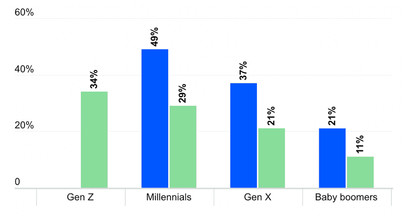 Graph shows the level of comfort with investing in cryptocurrencies (2021 vs. 2022). Source: Bankrate