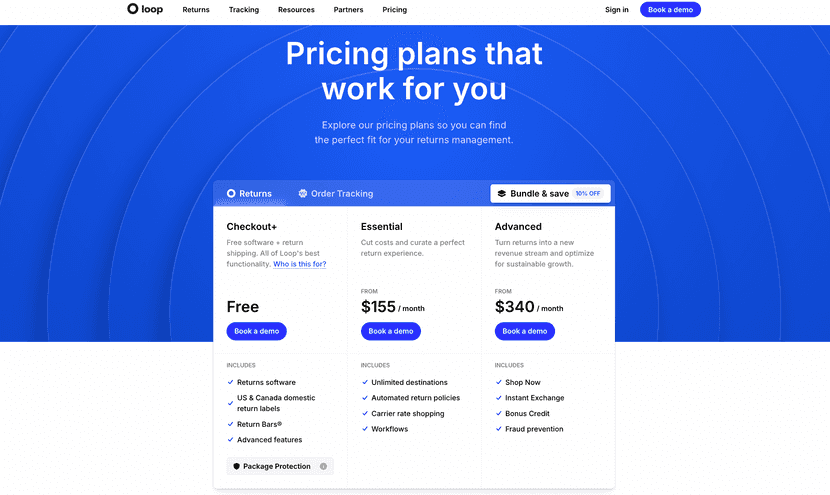 | Loop Returns | Returns software only (Enterprise tier); does not include shipping, tracking, or support modules | From ~$272 per month (~$3,260/year), plus volume-based fees |